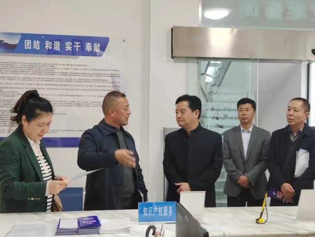 11月8日,安徽省市場監(jiān)督管理局知識產(chǎn)權公共服務處處長孫杰、省市場監(jiān)管局四級調研員袁立新在黃山市市場監(jiān)管局黨組成員、副局長張妮,歙縣市場監(jiān)督管理局局長江志偉等陪同下到我中心就企業(yè)知識產(chǎn)權工作進行實地調研。